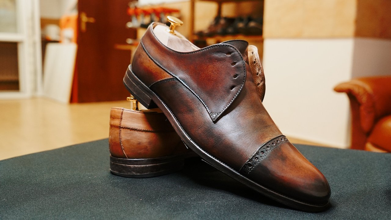 Восстановление цвета отдельных элементов после полного ухода кожаная обувь (мысы,пятки и тд) простой цвет