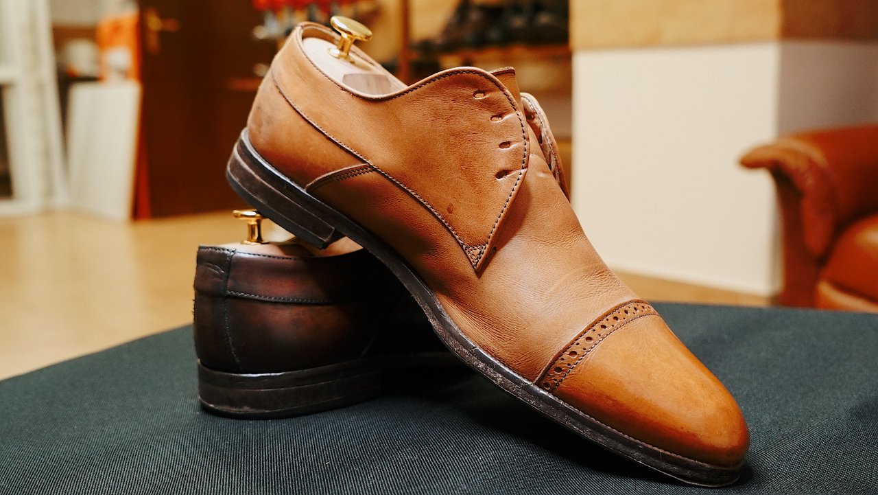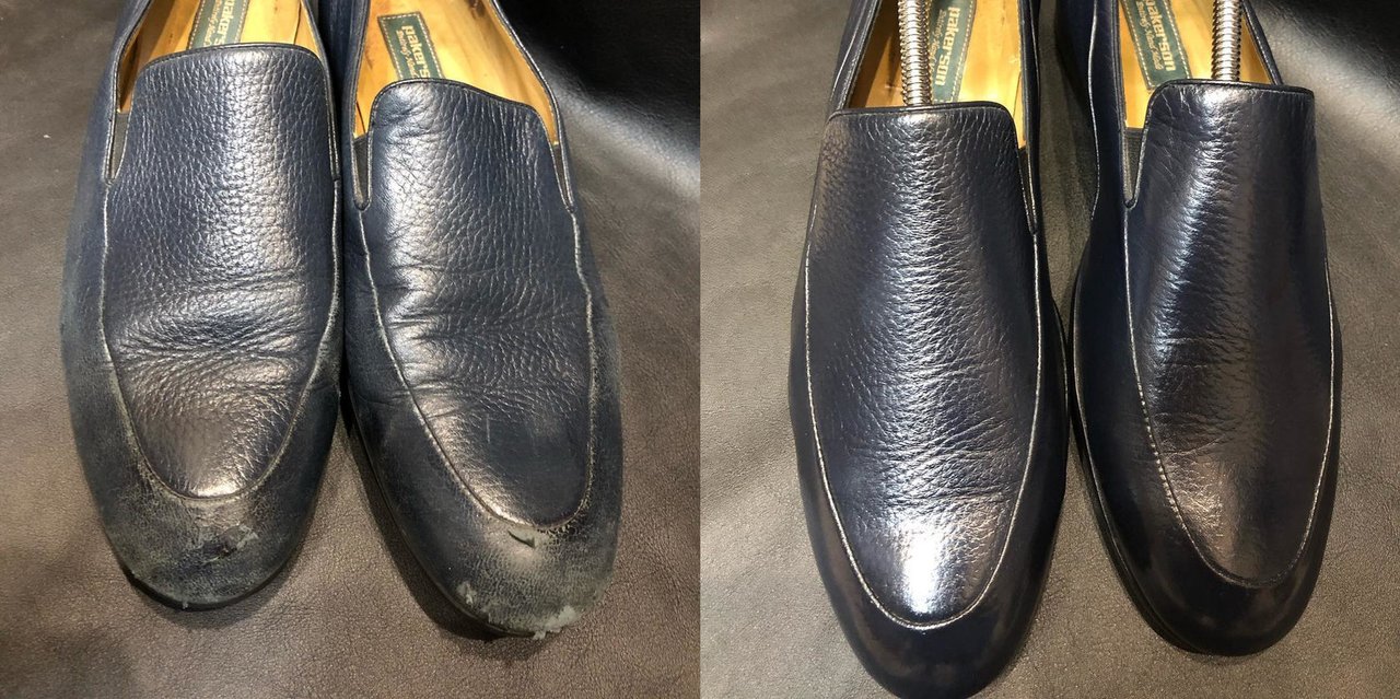 Восстановление отдельных элементов (устранение повреждений и цвета) кожаная обувь (мысы,пятки и тд) сложные цвета